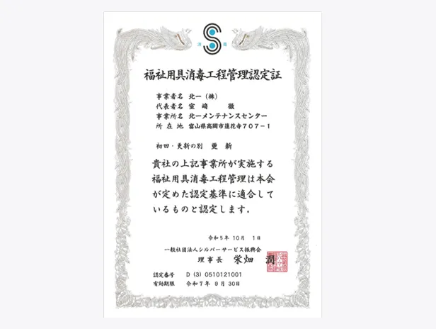 消毒工程管理認定工場の専用設備で